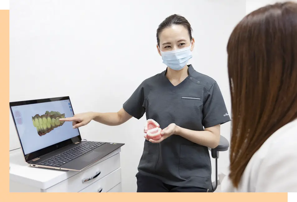 精密検査で得られたデータをもとに、検査結果や診断についてお話しさせていただきます。その上で、豊富な矯正治療メニューの中から、患者さまに合わせた適切な治療をご提案いたします。検査の結果や治療についてわからないことがございましたら、遠慮なくおっしゃってください。